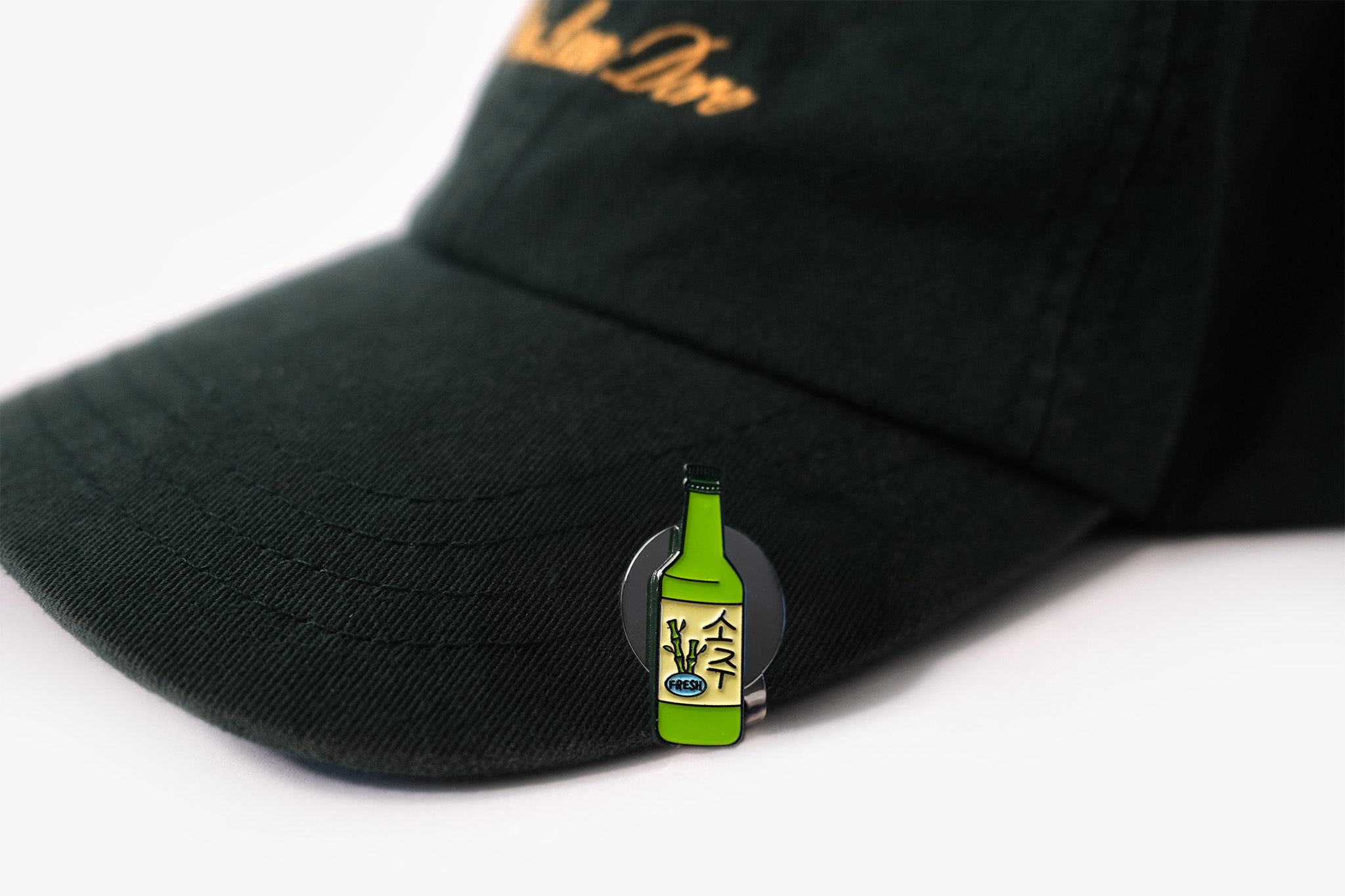 - π§ Soju-Inspired Golf Ball Marker β Features a mini green bottle design, perfect for fans of Korean culture and golfers with a sense of humor. Collaboration with local Bay Area artist Ann Sun
